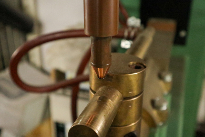 0.2mmの薄板を、直径1mmの棒に溶接する。